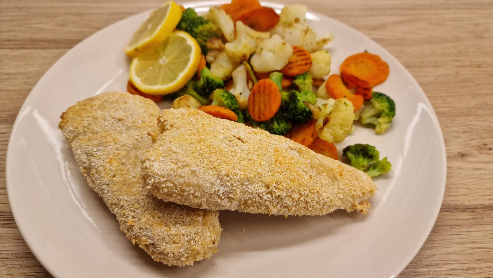 Panieruj rybę tak, jak robisz to zazwyczaj – wcześniej osusz ją ręcznikiem papierowym, aby pozbyć się nadmiaru wilgoci. Podawaj od razu po upieczeniu, najlepiej z plasterkiem cytryny i ulubionym dodatkiem.
